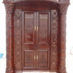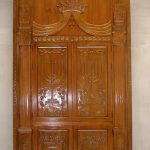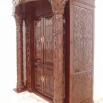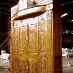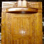 ארון קודש קלאסי עם גילופי עץ עבודת יד מהמסורת היהודית ועיר הקודש