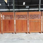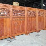 מחיצת עץ מלא עם עיטורי וגילופי עץ על רגליים מעוטרות.